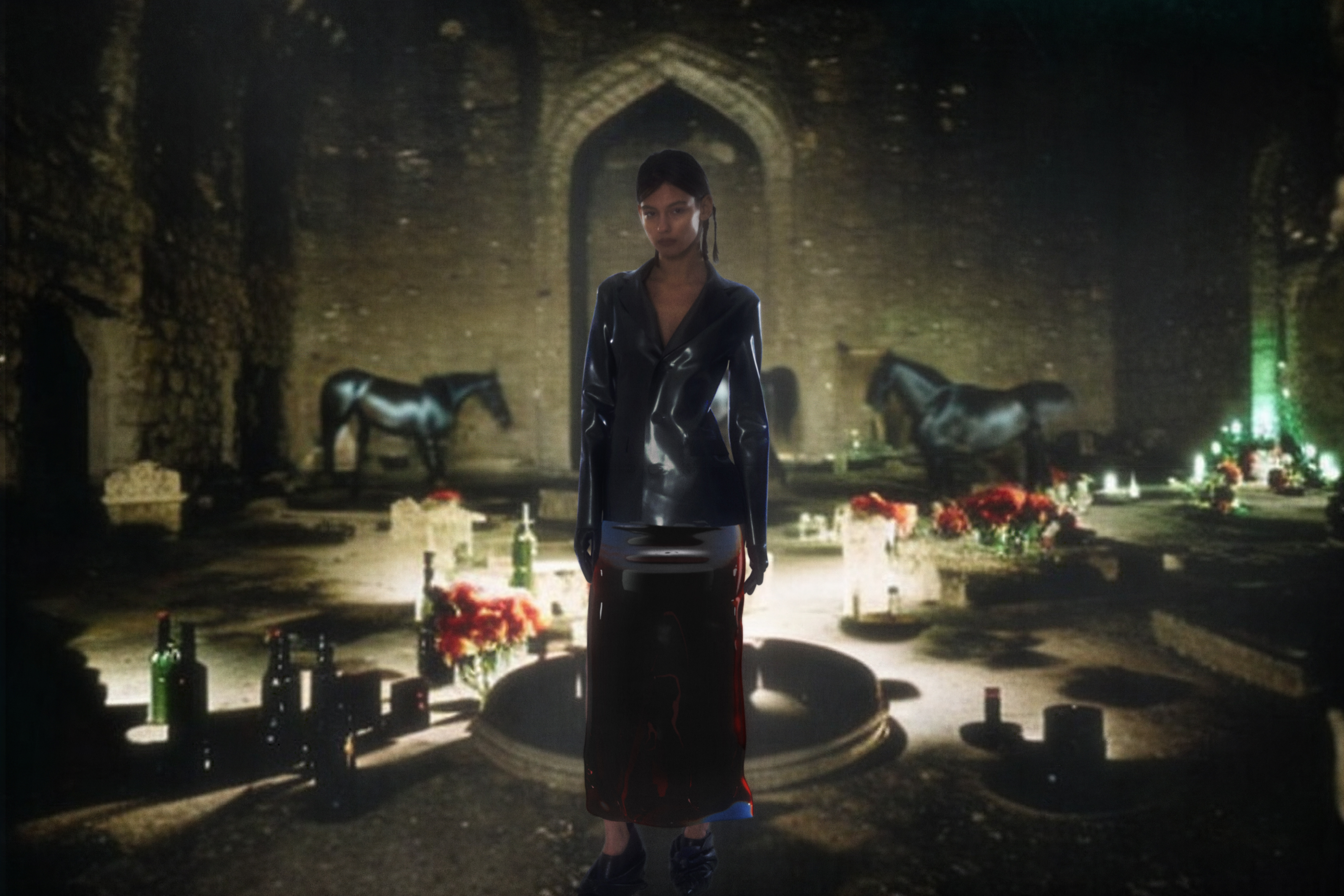 We created a virtual universe with JP Bonino inspired in Serguéi Paradzhánov. We also created a virtual capsule of digital wear with Eter Studio, and it’s worn here in a hybrid way. We merged some of our favorite pieces from ss23 with our digital collection as a way to challenge perception. This editorial represents the blurred lines between our fantasies and reality, a constant dream state.